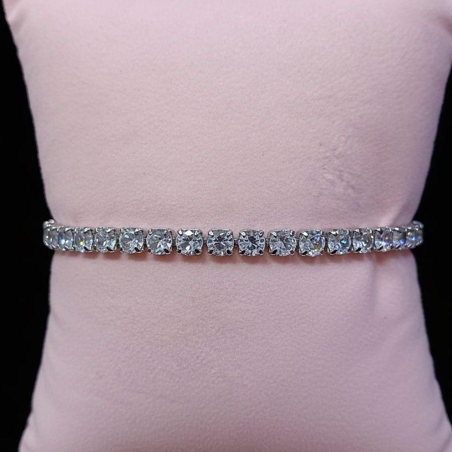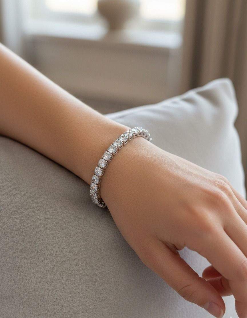 Timeless, refined, and beautifully minimal—this silver-tone CZ tennis bracelet is crafted to bring a soft yet stunning sparkle to your wrist. Each cubic zirconia stone is precision-cut and carefully set to create a continuous line of brilliance, offering the look of fine jewelry with everyday comfort.