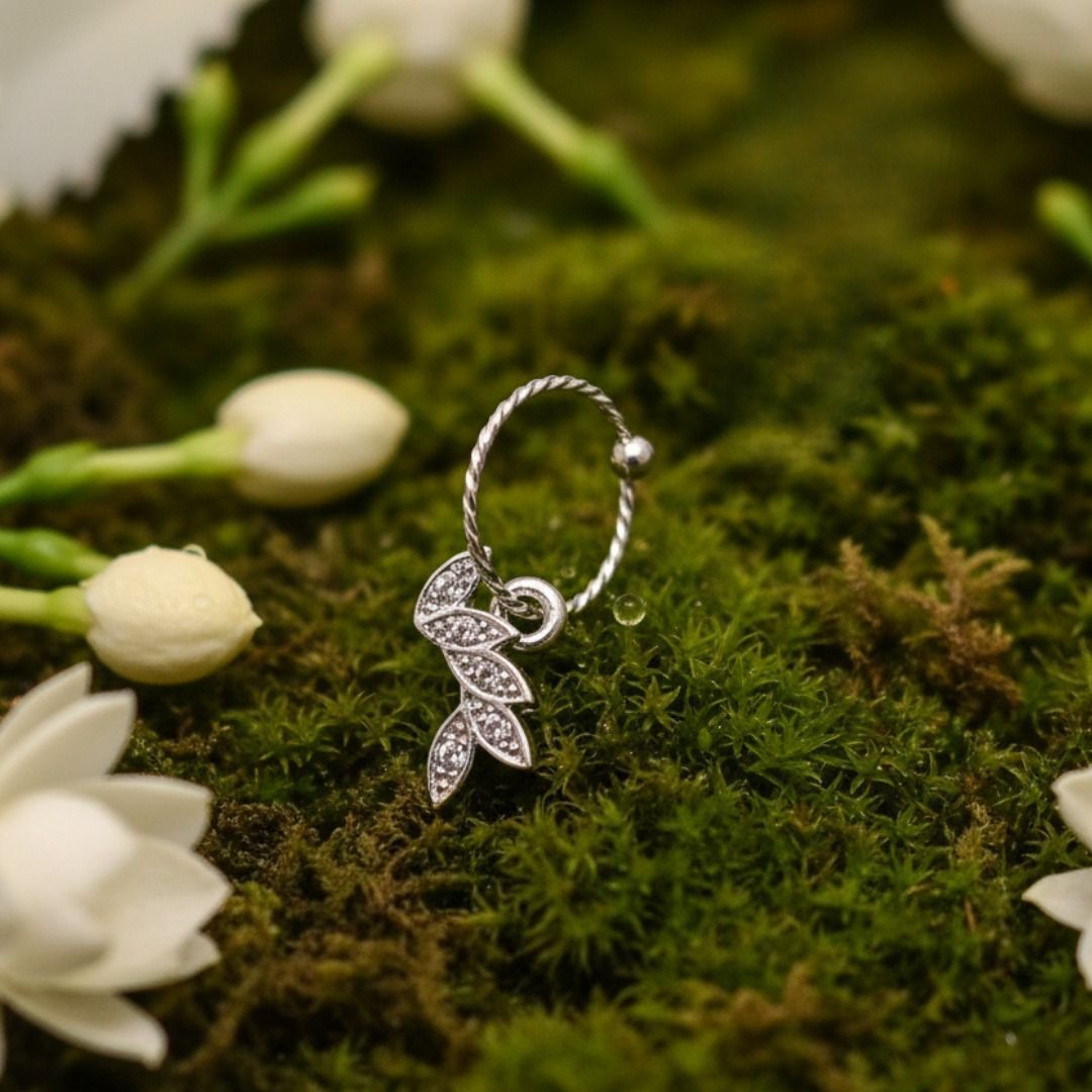Add a touch of organic sparkle to your piercing collection with this exquisite seamless hoop. The ring features a beautifully detailed leaf and vine design adorned with brilliant cubic zirconia (CZ) stones, ensuring an elegant, nature-inspired look. The high-polish finish makes this piece shine, perfect for enhancing any style.