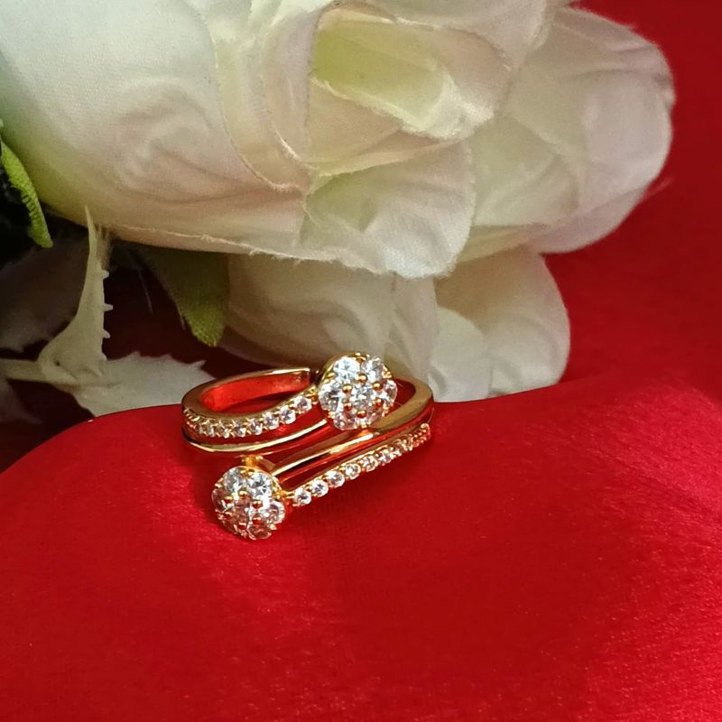 This modern gold-tone ring is all about sleek style with a hint of sparkle. Featuring a unique double-band design, it wraps elegantly around the finger for a look that's both minimal and eye-catching. Two circular elements sit at the top, each beautifully studded with tiny, sparkling stones that catch the light just right. The adjustable fit makes it as practical as it is pretty—no stress about sizing. Whether you’re dressing up for a night out or adding a polished touch to a casual look, this ring offers a perfect balance of contemporary design and timeless elegance.