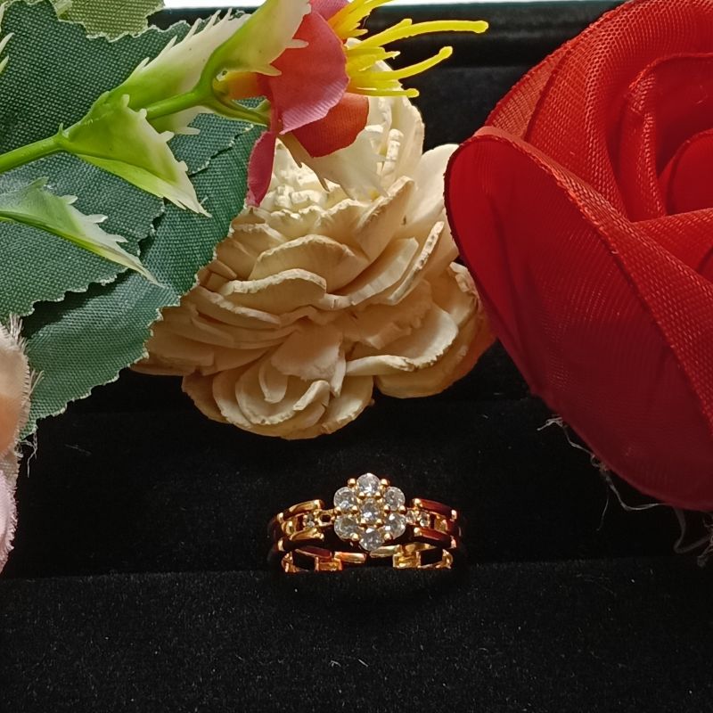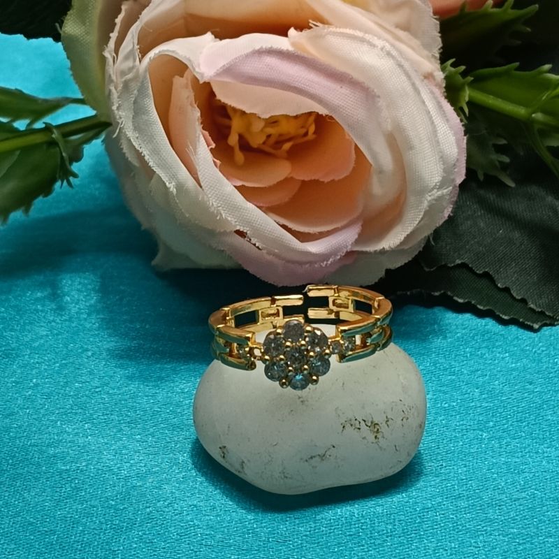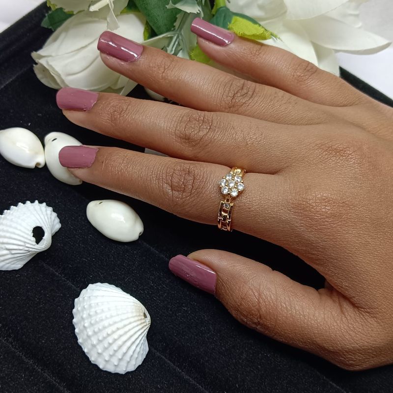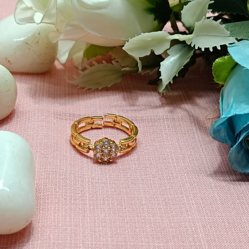 NIPSTec Elevate your jewelry collection with this exquisite gold-tone ring featuring a unique interconnected link-style band that mimics the fluidity of a bracelet. Crafted from polished gold-toned metal, the flexible band adds a modern and sophisticated twist to classic ring design. At its center, a stunning cluster of sparkling crystal stones forms an elegant floral pattern, each stone secured by delicate gold-toned prongs to maximize brilliance. This versatile ring effortlessly combines contemporary flair with timeless elegance, perfect for adding a refined sparkle to any outfit.