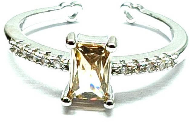 The golden amber hue of the rectangular stone gives the ring a natural, earthy vibe, while delicate rhinestones along the band add a gentle sparkle. Its open design allows for a custom fit on most finger sizes, making it easy to wear every day.Made from a lead-free and nickel-free silver-tone alloy, this ring is safe for sensitive skin and ideal for daily or occasional wear. Whether you’re dressing up or down, it’s a lovely gift or a personal style staple.