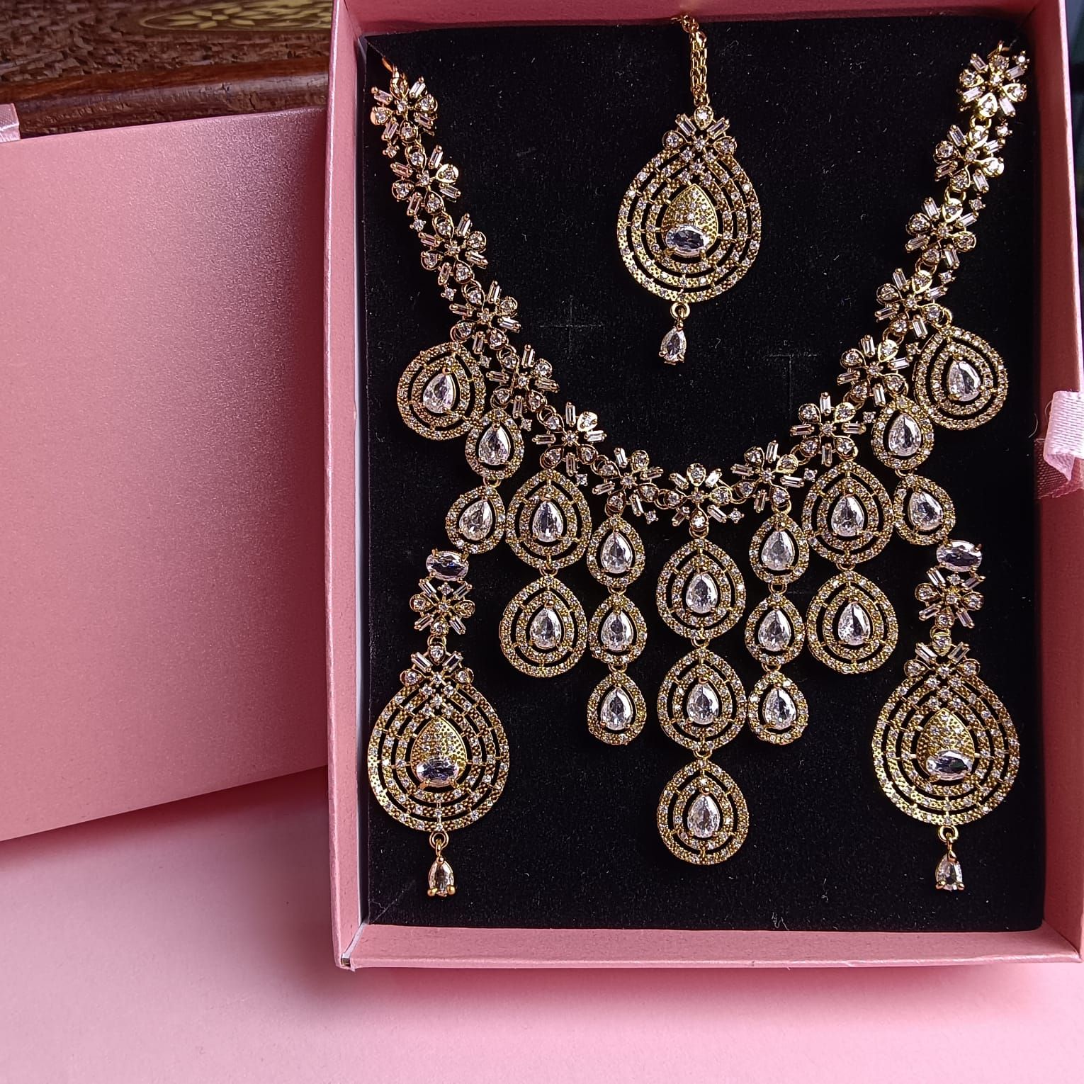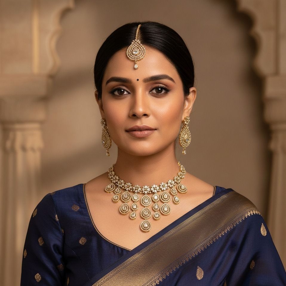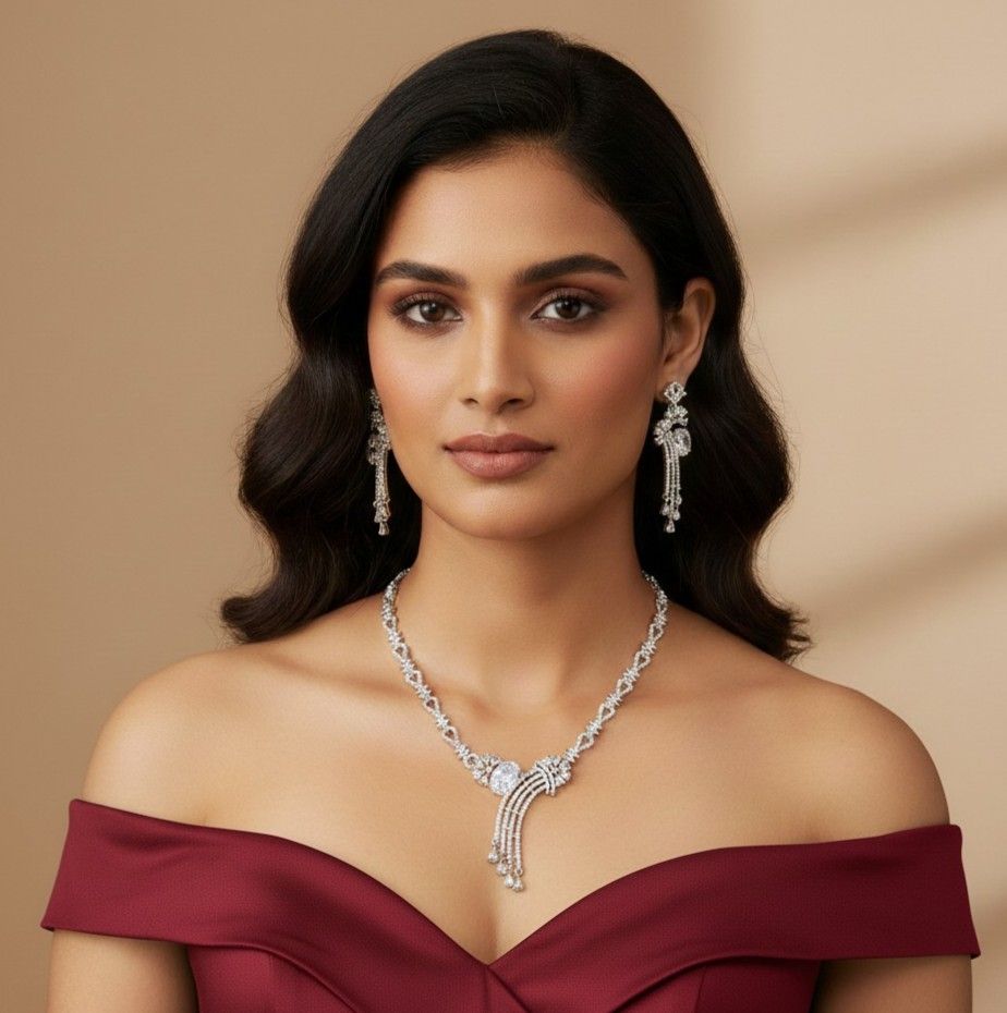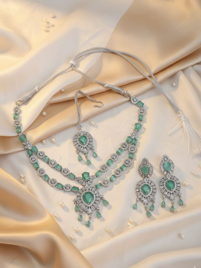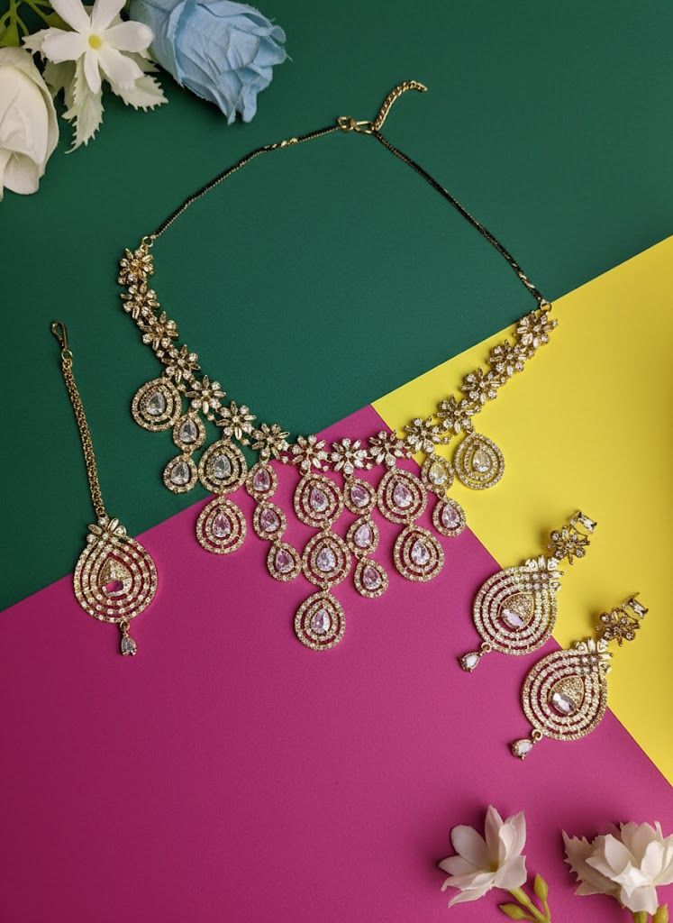Leading Manufacturers, Exporters, Wholesaler, Retailer and Trader of American Diamond Necklace Set, Antique South Indian Temple Jewelry Set, Elegant Sapphire-Voilet Statement Necklace Set, Elegant South Indian Temple Jewelry, Floral Resin Choker Necklace Set, Gold-Tone Cubic Zirconia Necklace Set, Gold-Tone Slip-On Necklace & Bracelet Set, Green Teardrop AD Necklace Set, Luxury Dual-Tone Necklace & Earrings Set, Minimal Gold-Tone Pear Stone Necklace Set, Multi-Layer Emerald-Green Cz Necklace Set, Premium Blue Cz Jewelry Set, Premium Blue Teardrop Statement Necklace Set, Premium Gold-Tone Teardrop Necklace Set, Premium Mint Green Cz Stone Necklace Set, Romantic Pink Cz Necklace Set, Royal Kundan Heritage Choker Jewelry Set, Sparkling Silver-Tone Cz Statement Necklace Set, Traditional Gold-Tone Pearl Choker Necklace Set and Women’S Indian Necklace Set from Delhi.