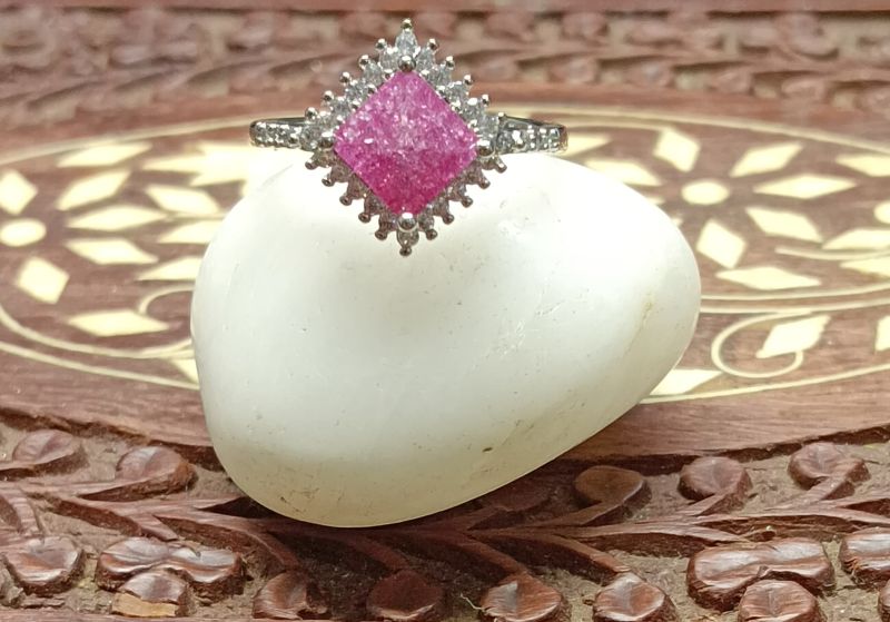 Add a touch of feminine elegance with this lovely pink square-cut ring, designed to sparkle beautifully in any light. Set in a sleek silver-toned metal, the soft pink centerpiece is encircled by a dazzling halo of clear crystals, enhancing its radiant charm. The band is adorned with delicate crystal accents, offering a graceful shimmer. Lightweight and versatile, this ring is perfect for bringing a subtle pop of color and sophistication to both special occasions and everyday outfits.